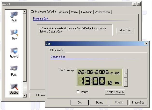 Předejít tomuto rozdílu časů lze pravidelným se souhlasením času PC a ústředny v rámci možností menu „Údržba“.