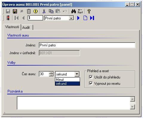 3.Upřesněte volbu „Uložit do přehledu“. Tato volba se ponechává obvykleneaktivní, jedná-li se o auxy použité pro různé automatické funkce sčastým spínáním, kdy není potřebné mít přehled o jejich stavu.