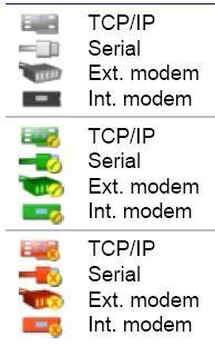 Stavkomunikace je znázorněn zbarvením ikon jednotlivýchtypů komunikace (ikona vlevo od ikony ústředny) :