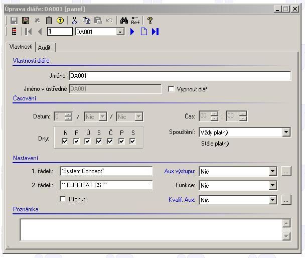 Aux výstupu (Auxiliary) – výstupní aux, který bude sepnut po dobu platnosti a vypnut, když diář nebude platný.