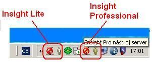 Jsou -li oba databázové servery (Lite i Pro) zastaveny a v systémové liště jsou ikony „Ovládání Insight (Lite)“ i „Ovládání Insight (Pro), je možno kliknutím na ikonu spustit jednu z aplikací.