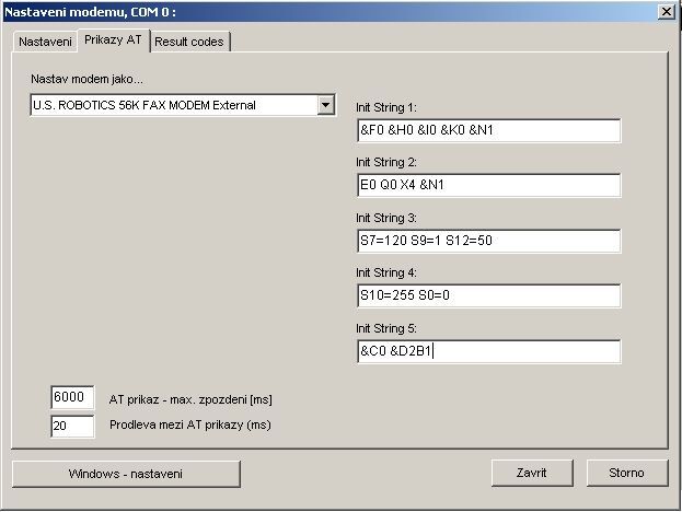 Nastavení modemu U.S.Robotics 56k pod Winloadem.