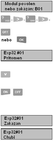 V případě chyby klávesou „OFF“ se vrátíte do výchozího nastavení, stiskem klávesy „OK“ potvrdíte zadání modulu.