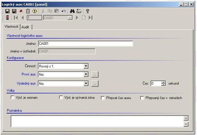 V závislosti na velikosti a konfiguraci paměti ústředny může být použito až 250 logických auxů.