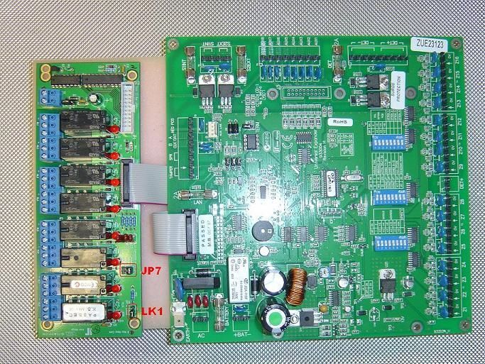 Na desce rozšiřujícího modulu musí být konfigurační propojka JP7 v poloze 9 – 16, a propojka LK1 nesmí být propojena.