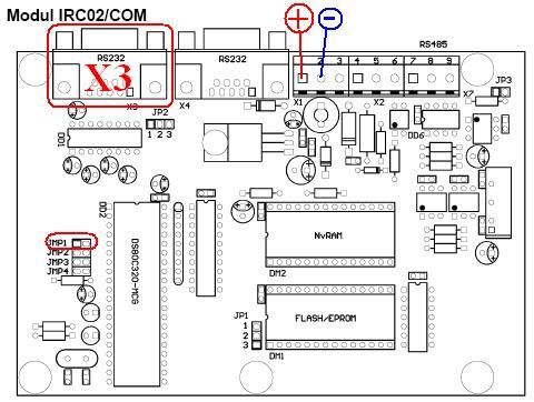 Řešení: V „Instalačním a programovacím manuálu“ komunikačního modulu IRC02/com verze 2.1 je v odstavci „Nastavení modulu IRC02/com“ nepřesně uveden port pro připojení PC v režimu konfigurace. Pro konfiguraci modulu musí být PC připojen do konektoru X3 - vstupní a konfigurační sériová linka (viz obrázek). Pro přepnutí modulu do konfiguračního režimu musí být rovněž zasunuta propojka JMP1.