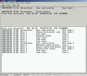 Chceme-li sledovat stav systému třeba na obrazovce PC, bez toho aniž bychom mohli měnit nastavení parametrů systému je vhodné použít tiskový modul APR3-PRN1. Tento modul umožňuje tisk událostí systému buď přes LPT port přímo na tiskárnu nebo zasílání událostí po sériové lince do PC. V programování modulu nastavíme informace, které ze systému chceme posílat (zvolíme konkrétní zóny, skupiny, kódy a pod.). Pro sledování informací na PC v OS Windows použijeme program Hyperterminal. Program zachytává komunikaci po sériové lince a umožňuje informace ukládat do souboru. Uživatel tak může sledovat pouze ty informace ze systému které ho zajímají a zároveň nemůže měnit nastavení systému. To je vhodné pro koncové uživatele, kteří chtějí mít přehled co se děje v systému a zároveň se nemusí bát, že by mohli omylem změnit nastavení systému. Navíc může být spuštěno několik Hyperterminálů zároveň, což u SW WinLoad a NEWare nelze, a uživatel tak může sledovat několik ústředen zároveň na jednom PC, je v podstatě omezen pouze počtem portů. Na následujícím obrázku je okno programu Hyperterminal s historií systému.
