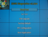 - V SDVR vstoupit do menu >SECURITY>ADMIN PASSWORD stisknout 1, 2, 3, 4, 1, 2, 3, 4 a SEL tlačítko – vstoupíte do diagnostického menu (obr. 1). Nebo při startu systému držet tlačítko ESC – vstup do diagnostického menu bez instalovaného HDD.