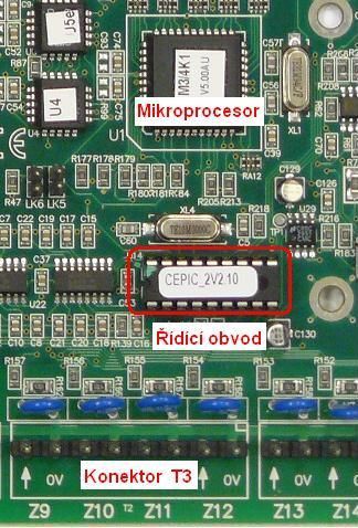 Řídící obvod PIC je použit pro určení přesně stanovených systémových voleb a možnosti upgrade firmware modulu ústředny. Obvod je označen U14 a umístěn mezi konektor T3 (zóny 9 – 12) a mikroprocesor.