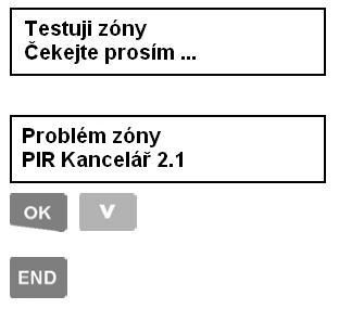 Tato obrazovka bude zobrazena v průběhu testování zón ve vybraném prostoru. Jestliže nebude žádná problémová zóna, zobrazení se vrátí do předchozí obrazovky. Není-li další prostor pro testování, zobrazí se zpráva "Kontrola ukončena".
