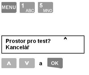 Použitím kláves se šipkami „^“ a „V“ a klávesy „OK“ je možno vybrat prostor pro test.