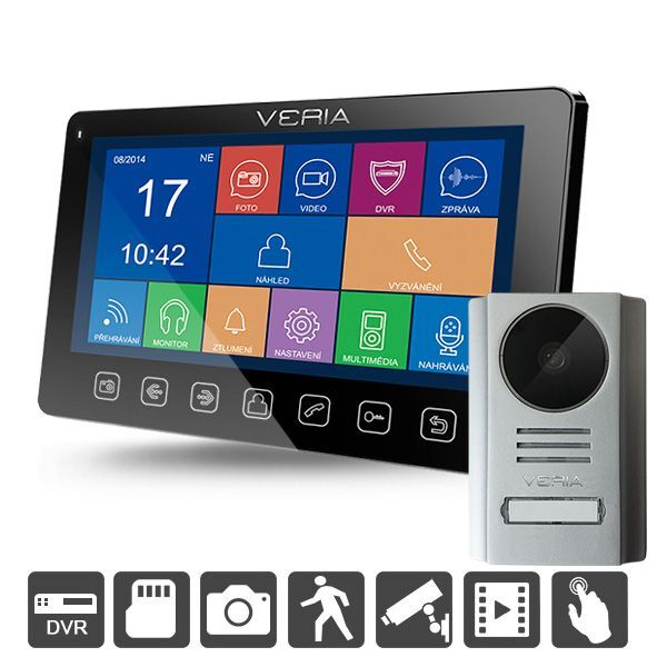 SET Videotelefon VERIA 7076C černý + VERIA 229Unikátní ultra tenký videotelefon v elegantním designu se 7" displejem, který na rozdíl od vyšší řady (modelu VERIA 7077) používá k ovládání dotykových kláves. Součástí setu je také vstupní / dveřní stanice s kamerou VERIA 229. Ovládání videotelefonu je snadné díky menu kompletně v českém jazyce.