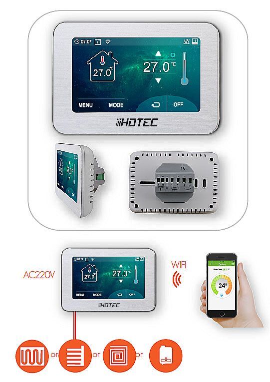 HDT-ST01W SMART Wi-Fi prostorový termostat s 4.3" dotykovým LCD displejem