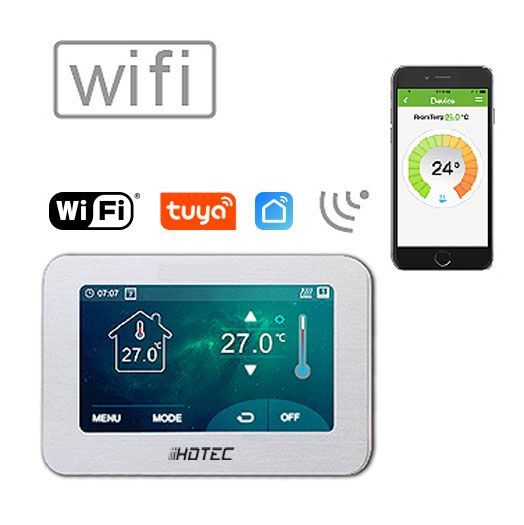 Prémiový SMART WiFi prostorový termostat pro regulaci topení a nebo klimatizace. WiFi konektivita se serverem Tuya, ovládání pomocí mobilního telefonu prostřednictvím aplikace Tuya nebo Smart Life. Termostat dokáže řídit jakékoliv topení včetně podlahového kde je vyžadované externí teplotní čidlo proti přehřátí.