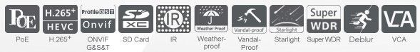 | Síťové protokoly | IPv4/IPv6, TCP, UDP, RTP, RTSP, RTCP, HTTP, HTTPS, DNS, DDNS, DHCP, FTP, NTP, SMTP, UPnP, SIP, SNMP, PPPoE, VLAN, 802.1x, QoS, IGMP, ICMP, SSL, ARP |