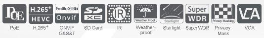 | Síťové protokoly | IPv4/IPv6, TCP, UDP, RTP, RTSP, RTCP, HTTP, HTTPS, DNS, DDNS, DHCP, FTP, NTP, SMTP, UPnP, SIP, SNMP, PPPoE, VLAN, 802.1x, QoS, IGMP, ICMP, SSL, ARP |