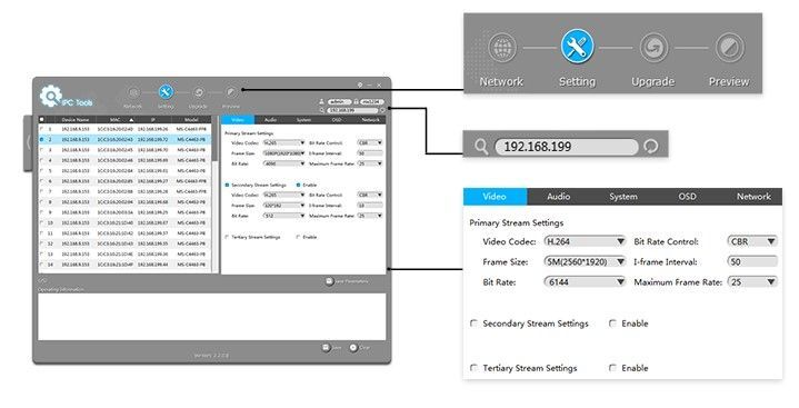 Milesight Smart Tools SW pro správu zařízení Milesight, vyhledání IP kamer a NVR připojené v LAN, nastavení základních parametrů a aktualizaci, inteligentní kalkulačka pro výpočet výkonu CCTV systému. SW je dodáván bez omezení a zdarma.