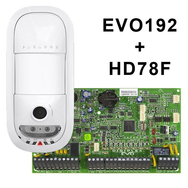 Balíček obsahující ústřednu EVO 192 + sběrnicový detektor s WiFi kamerou HD78F