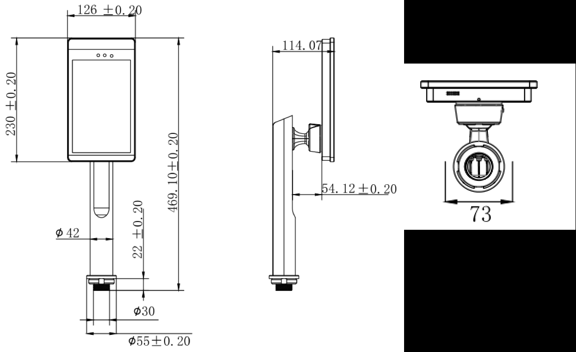 Podporuje autonomní provoz s měřením teploty, detekce nasazené roušky a nebo identifikace z databáze obličeje v paměti čtečky.