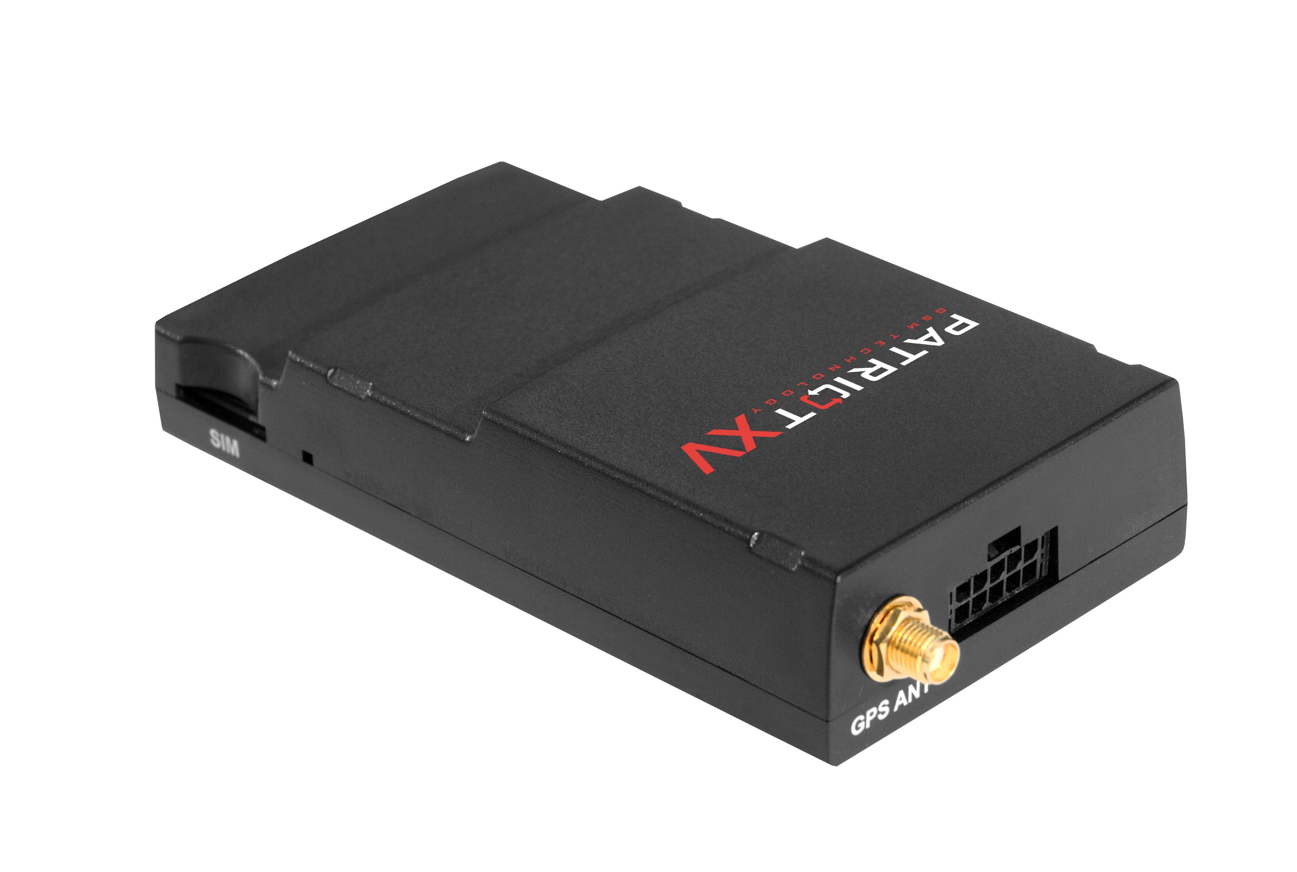 LTE GSM/GPS komunikační jednotka PATRIOT s externí anténou pro pevnou instalaci pro zabezpečení vozidla se záznamem GPS souřadnic a on-line posíláním přes GSM síť na server pro zpracování provozu vozidla do EKJ. Obsahuje 3D gravitační senzor, záložní akumulátor a komunikační vstupy a výstupy pro různé příslušenství jako je Dallas & RFID čtečka, průtokoměr, palivová měrná tyč, snímač teploty, CAN bus, atd.
