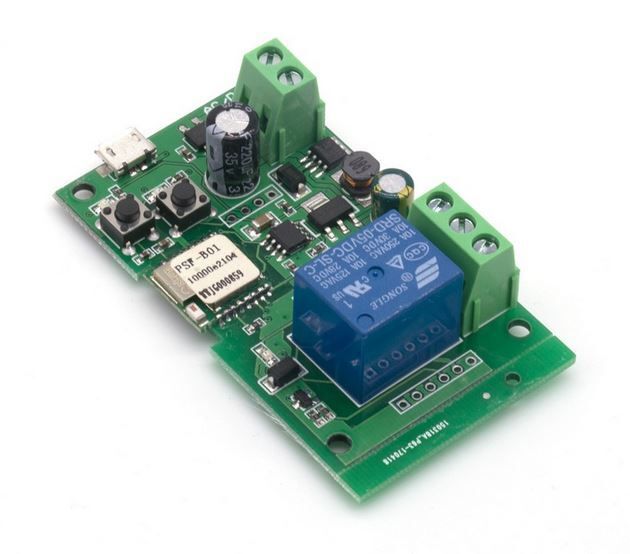 Spínač je možno napájet 5V DC micro USB konektorem (nabíječkou na telefon, USB portem z počítače) nebo 7-32 V AC/DC na svorkovnici.
