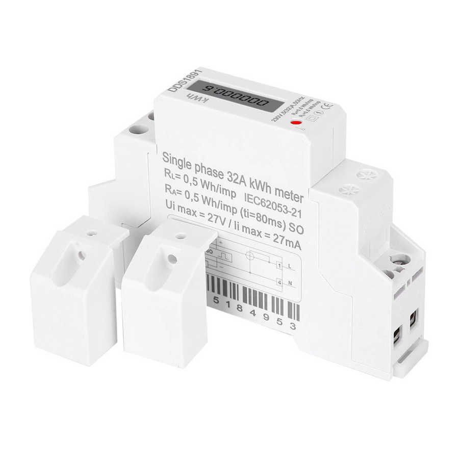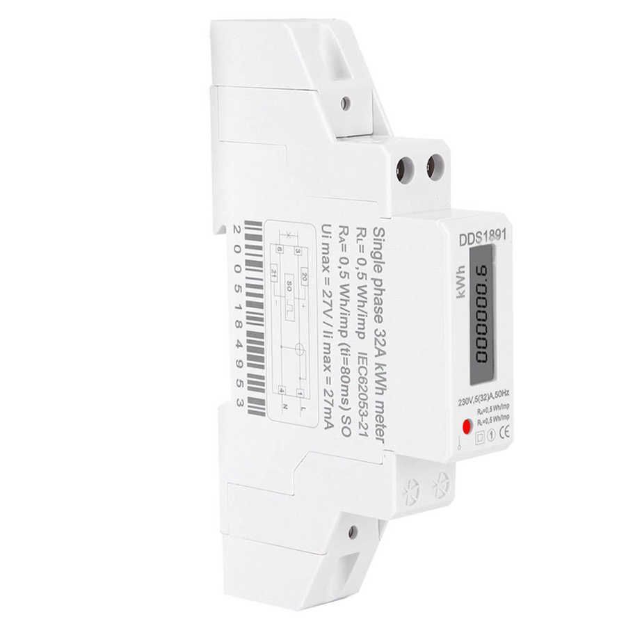 Jednofázový elektroměr, 240V 5(32A), přesnost třídy 1 IEC62053-21, LCD displej, výstup pulsů 80±5 ms, instalace na DIN 1xmodul 18mm, rozměry 18 x 119 x 62mm.