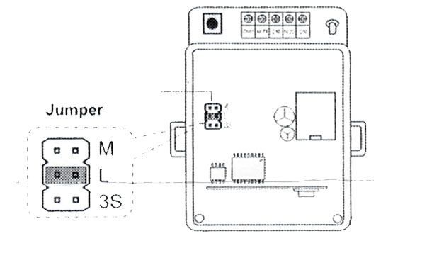 Pro nastavení režimu relé je nutné sejmout kryt. Pozice propojky Jumperu: M - spínač L - přepínaní 3S - 5s puls |