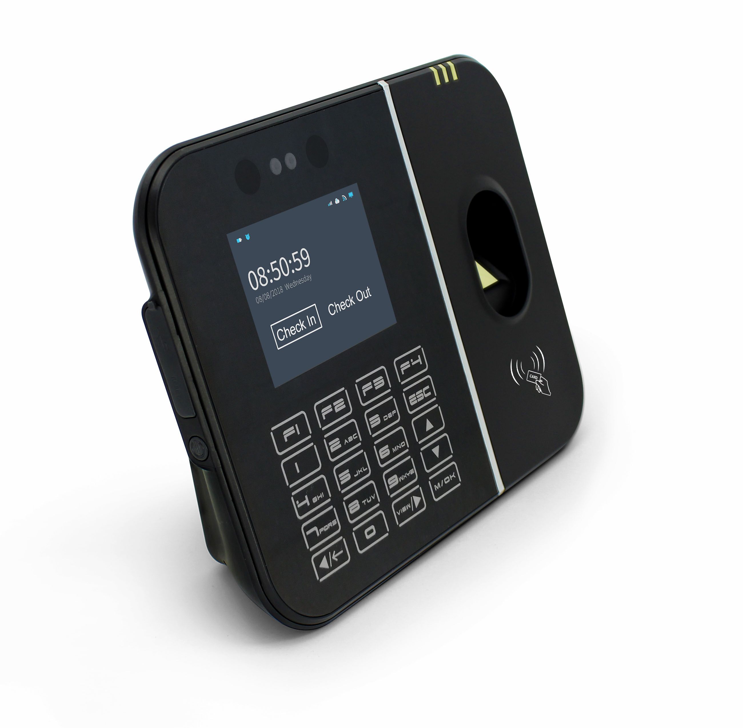 SYSFX9 SYSDO terminál pro docházku a přístup, rozpoznání obličeje, biometrická čtečka, Emarine 125kHz karta /na objednání Mifare 13,56kHz/, kód. Komunikace TCP/IP, WiFi, USB, 26/34 Wiegand. LCD 2.8" barevný displej. Napájení 12VDC / POE, akumulátor o kapacitě 1400mA s dobou provozu až 4hod.