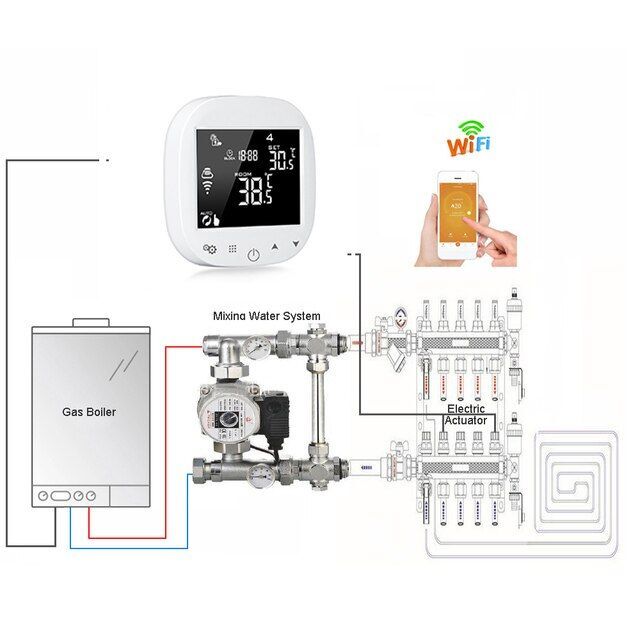 SMART WiFi prostorový termostat pro regulaci topení. WiFi konektivita se serverem Tuya, ovládání pomocí mobilního telefonu prostřednictvím aplikace Tuya nebo Smart Life.