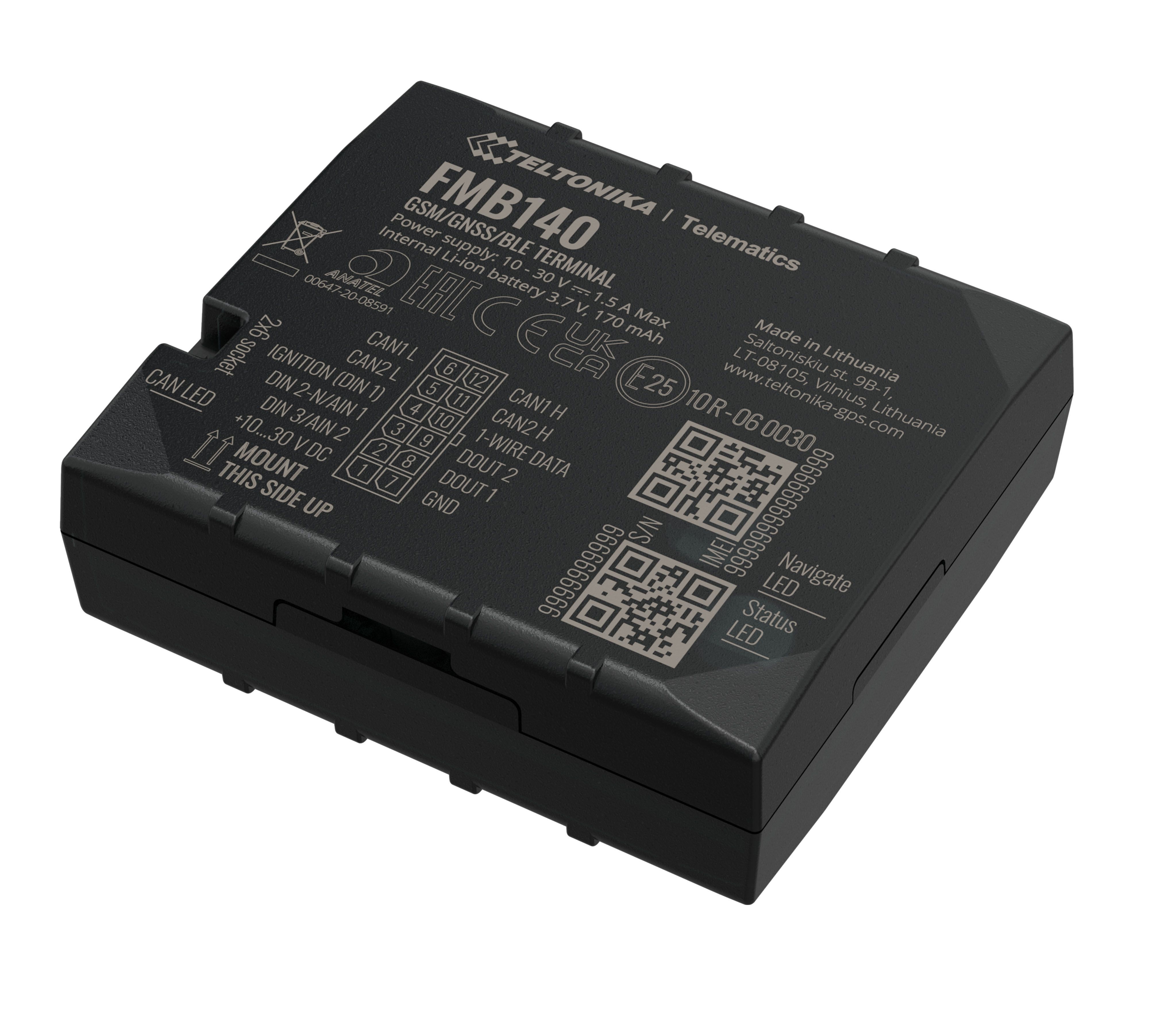 FMB140 CAN-BUS GPS jednotka 2G, interní GSM a GPS anténa, záložní akumulátor 170mA, Bluetooth, 1x vstup,1x výstup, 1xdig. vstup, napájení 6 – 30VDC, rozměry 79 x 43 x 12 mm