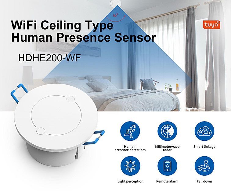 TUYA Zigbee MW detektor přítomností osob a intenzity osvětlení pro domácí automatizaci. Podpora platformy Tuya pro internet věcí, napájení 230VAC, určený pro instalaci do podhledu.