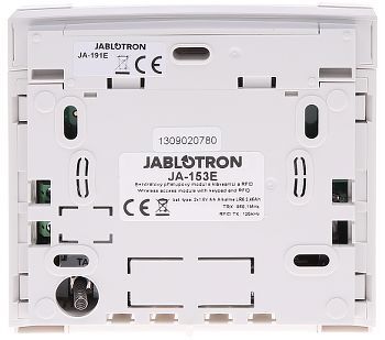 JA-153E-WH je obousměrně komunikující bezdrátový přístupový modul s klávesnicí a RFID čtečkou pro ovládání zabezpečovacího systému. Obsahuje jeden ovládací segment, a pokud je potřeba, může být vybaven až 20 ovládacími segmenty.