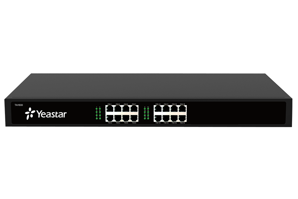 IP brána s 16 FXS porty pro připojení analogových telefonů a faxů.