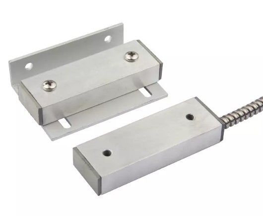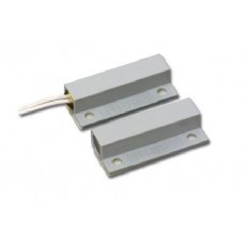 Vratový magnetický kontakt, masivné kovové provedení pro velká vrata, drátové vývody v pancéřovém krku, 2-vodičové provedení, rozměry 51x20x10mm