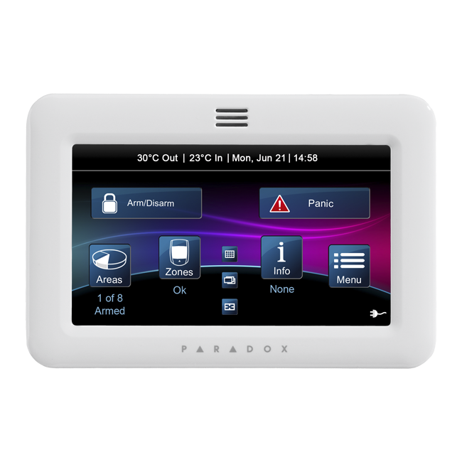 Cenově zvýhodněná sada ústředny EVOHD+ a grafické klávesnice TM50 bílá.