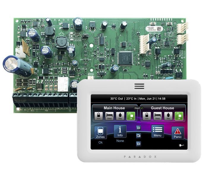 Hybridní ústředna Paradox MG5050+ pro drátový i bezdrátový zabezpečovací systém. Ústředna má maximálně 32 zón, což plně stačí pro plnohodnotné zabezpečení napříkla...