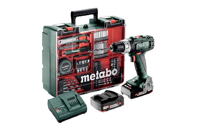 Kompaktní vrtačka pro univerzální použití, Mobilní dílna: Plastový kufr vč. bohatého příslušenství k vrtání, šroubování a více, Systém Metabo Quick: Rychlá ...