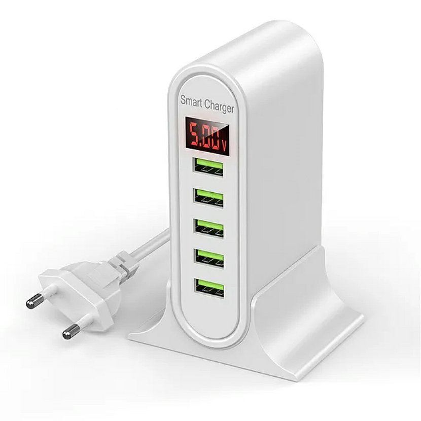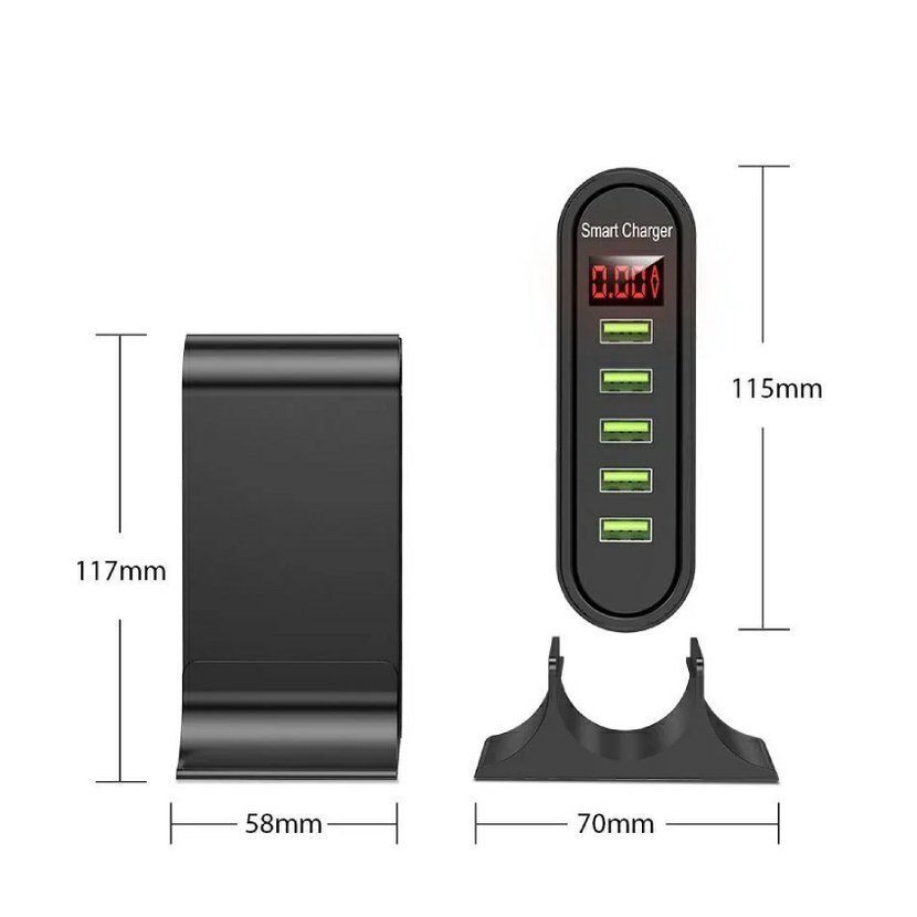 Stolní USB nabíječka, 5 pozic USB, 5V/4A, inteligentní nabíjení, automatické vypnutí, displej s červenými znaky, stolní provedení, napájecí kabel 1,8m, barva bílá nebo černá