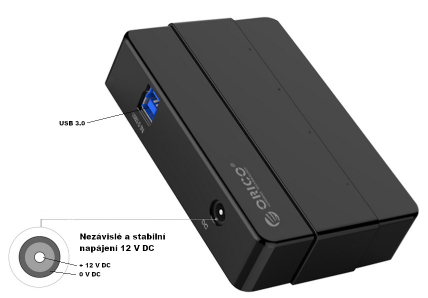 To také umožňuje zapojit hub do záložního napájení z řídicí jednotky.