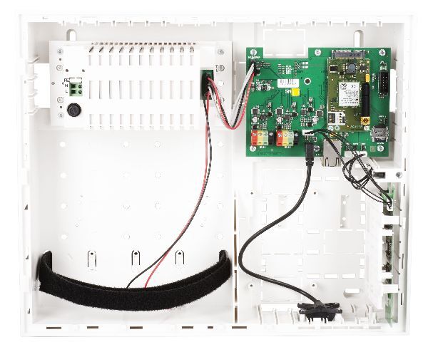 Hybridní ústředna zabezpečovacího systému s podporou foto verifikace poplachu, 50 uživatelů, 100 komponentů. Stupeň zabezpečení 2, třída prostředí II dle EN 50131