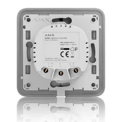 Kombinovaný vypínač se skládá ze 2, 3, 4 nebo 5 relé, dotykových tlačítek a rámečku s odpovídajícím počtem otvorů. Místo vypínače lze použít i inteligentní zásuvku Ajax