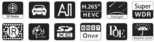 | Pokročilé funkce | BLC, HLC, 2D DNR, 3D DNR, odmlžování, AWB, filtrování IP adres, AGC |