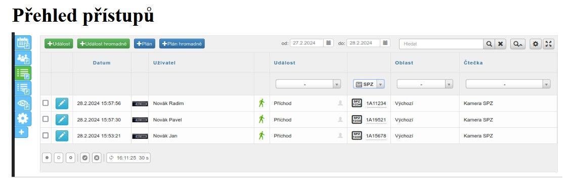 - vytvoření white listu a přidání vozidel a kamer pro které list platí