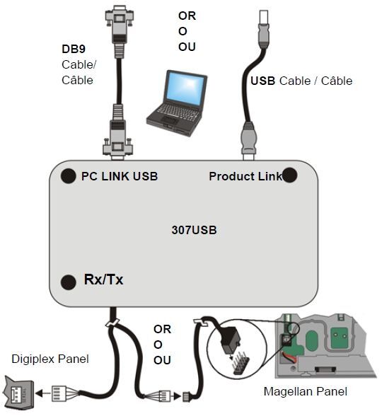 Interface pro přímé spojení mezi PC a modulem/ústřednou. Na PC je použito rozhraní USB nebo RS232. Pro připojení k MG6060/6160 je nutné použít redukci ze 4 na 10-ti pinový kabel.