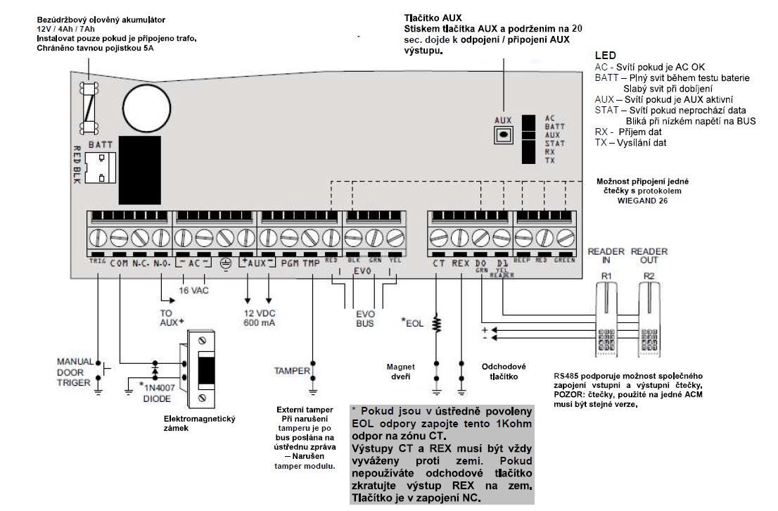 Kompatibilita ACM12 V4.5 a vyšší je kompatibilní pouze s panely EVOHD V4.5 a vyšší a EVO192 V4.5 a vyšší.