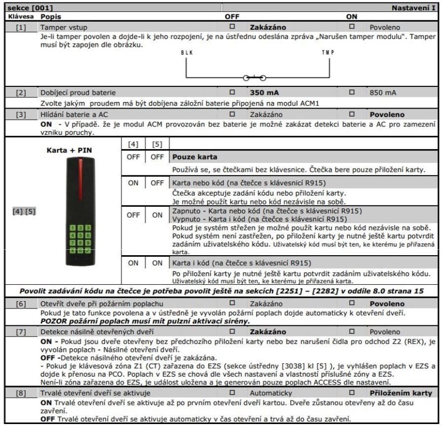 | Počet výstupů 2 | 100 mA PGM výstup, a druhý výkoné relé 5A / 28 Vdc, N.O. / N.C. |
