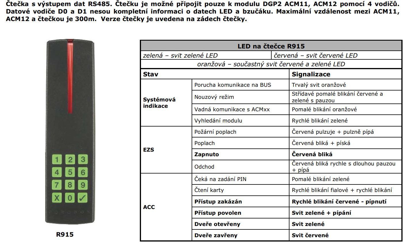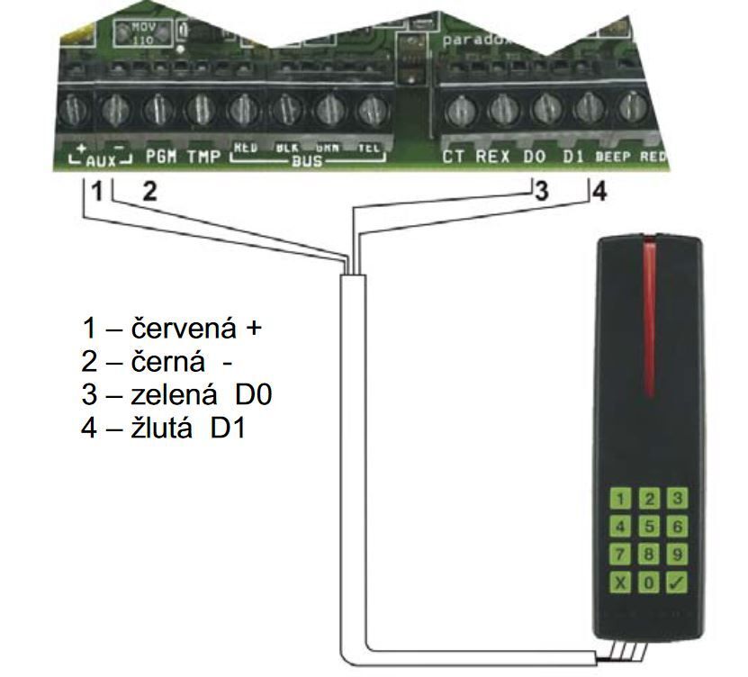 čtyřdrátové sběrnici RS485 PARADOX. Čtečku lze provozovat ve 4