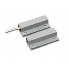 Plastový magnetický kontakt. Tento magnetický kontakt je určen pro plošnou montáž na nevodivé i vodivé materiály. Dvouvodičové připojení.