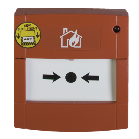 Tísňový plastový hlásič s výklopnou páčkou. Vyklopením páčky
