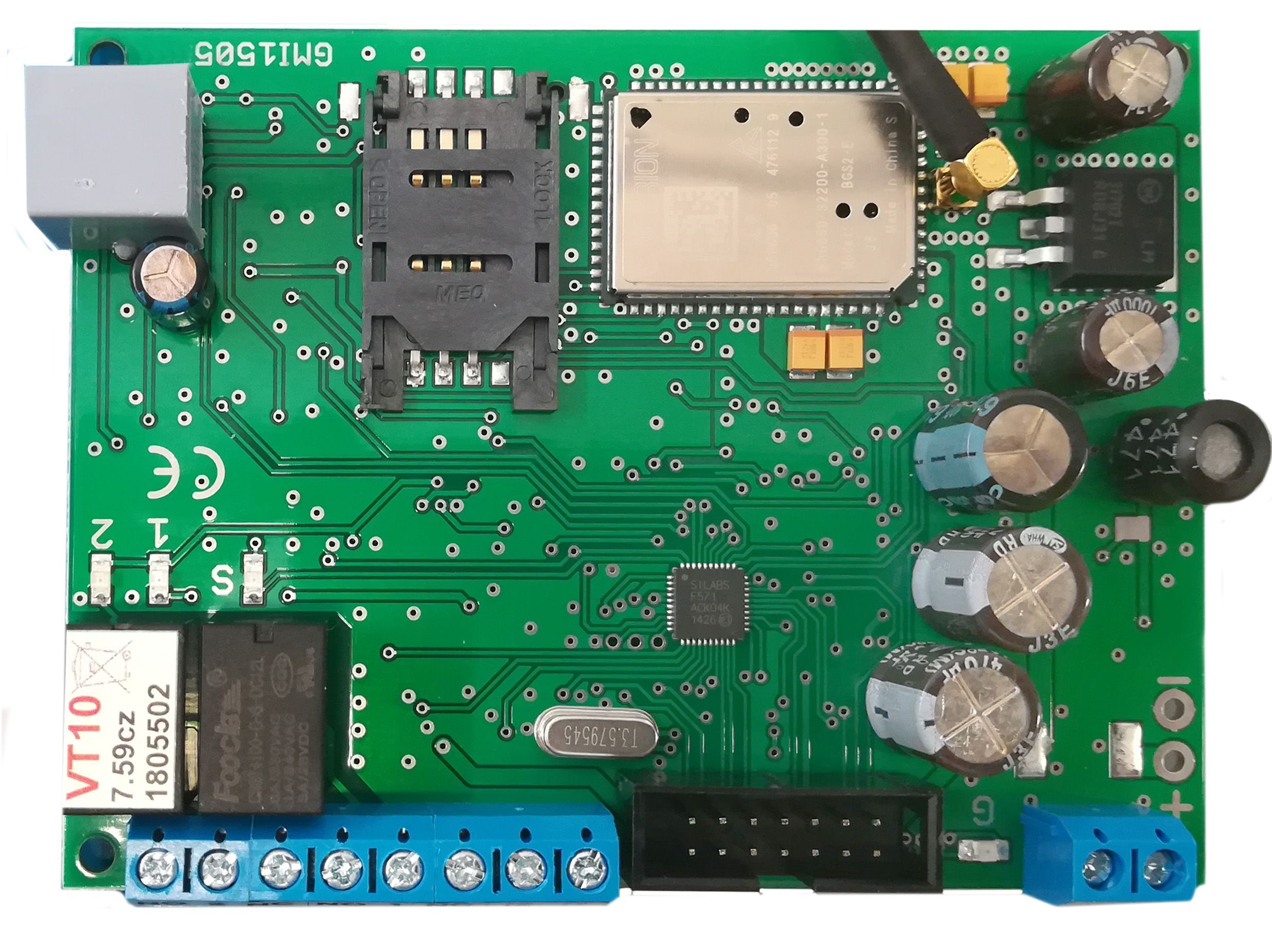 GSM brána na telefonní SIM kartu, fungující pod všemi operátory v ČR, ovládací program, ovládání vstupů prozvoněním, programování přes SMS. S expanderem VT03 možnost použití jako malé ústředny EZS.
